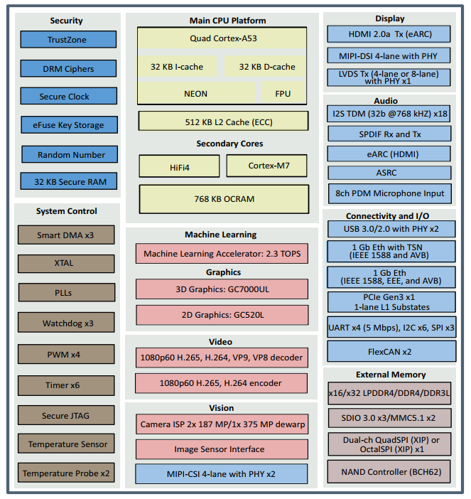 内核 4x Cortex-A53 + Cortex-M7 4x Cortex-A53 + Cortex-M7