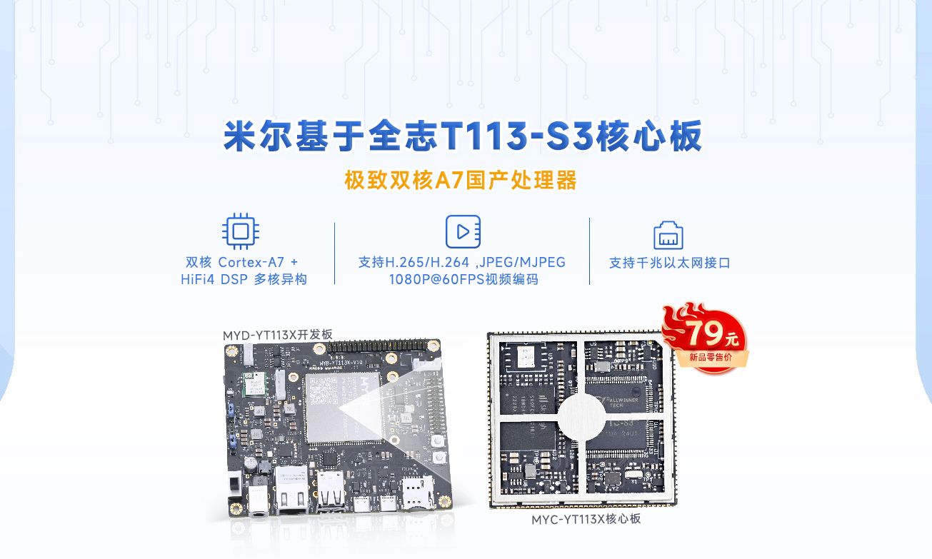 近年来,中国的芯片产业发展势头迅猛,国产芯片公司不断推出新产品,让中国的芯片产业发展迎来了新的高度。710公海赌赌船官网欢迎您2022年推出全志国产处理器T507核心板,取得良好的市场反响,这款车规级处理器广泛应用于能源电力、PLC控制、物联网网关、医疗器械、商业显示等行业。此次710公海赌赌船官网欢迎您与全志再度合作,推出国产低成本双核A7处理器——T113-S3的核心板和开发板,这款MYC-YT113S3核心板价格低至79元!