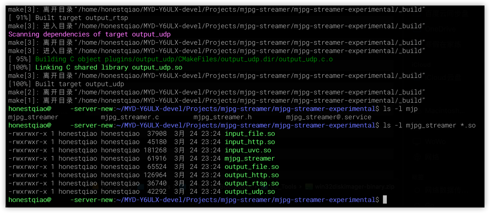 make ls -l ssd1306_bin # 部署文件到开发板 scp ssd1306_bin root@192.168.1.177:~/mjpeg_server/