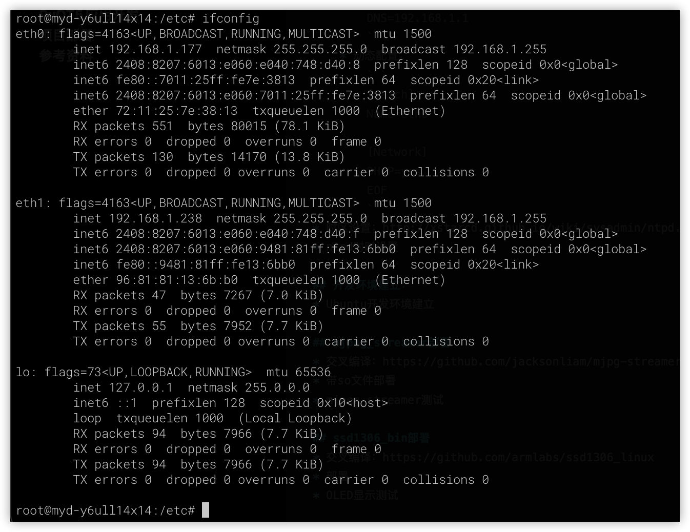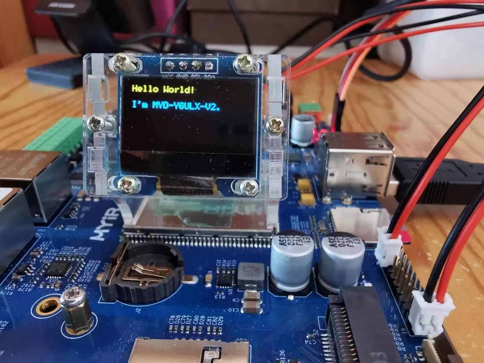 cd ~/mjpeg_server ./ssd1306_bin -n 1 -I 128x64 ./ssd1306_bin -n 1 -c ./ssd1306_bin -n 1 -r 0 ./ssd1306_bin -n 1 -x 0 -y -0 -m "Hello World!nnI'm MYD-Y6ULX-V2."